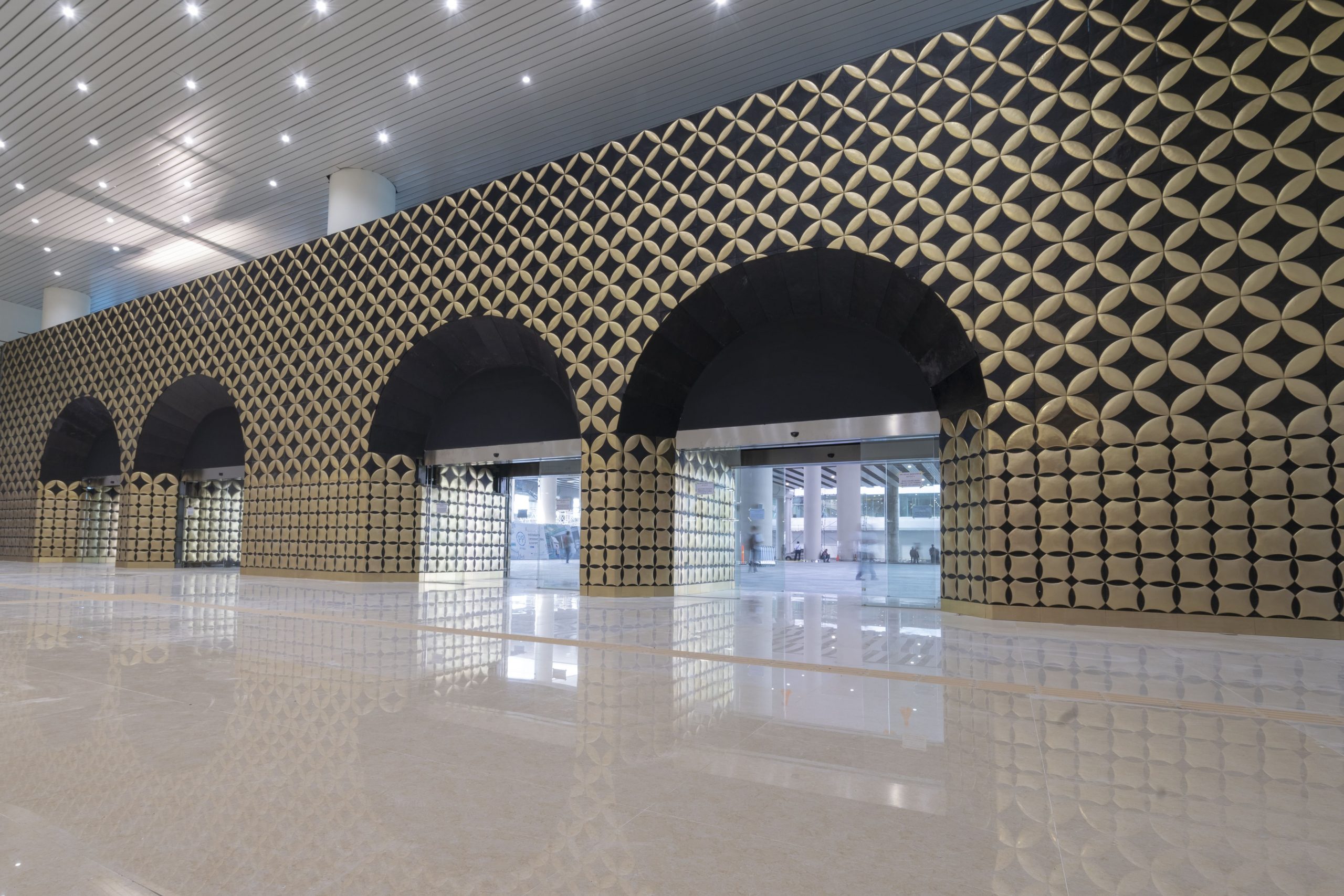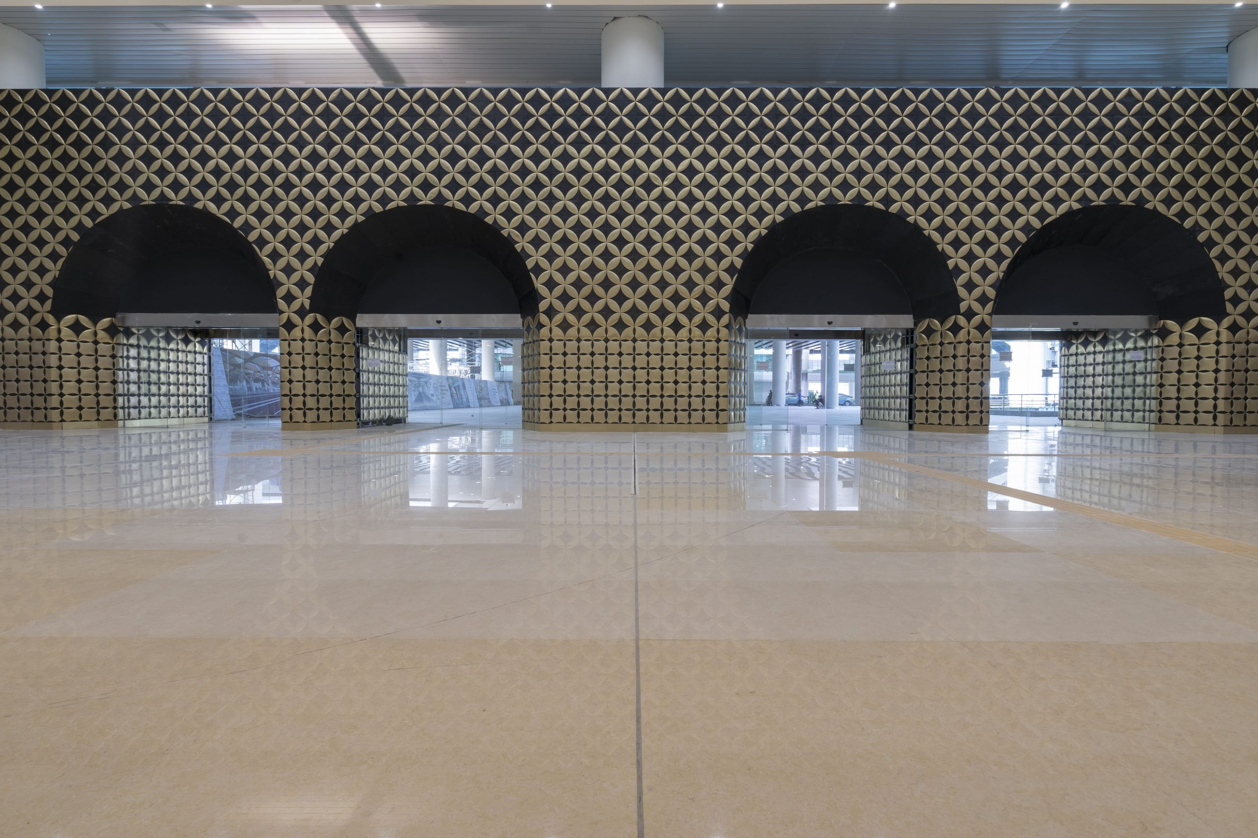 Lawang papat dibungkus dengan motif kawung yang bentuknya bergradasi, sebagai simbol dari perkembangan serta kesatuan untuk mencapai kehidupan yang nyaman. Pada bagian tertera surya sengkala (penanda tahun masehi), tahun Yogyakarta International Airport (YIA) diresmikan sebagai pengingat momentum angka tahun yang dianggap bersejarah dan harus dikenang oleh generasi yang akan datang.